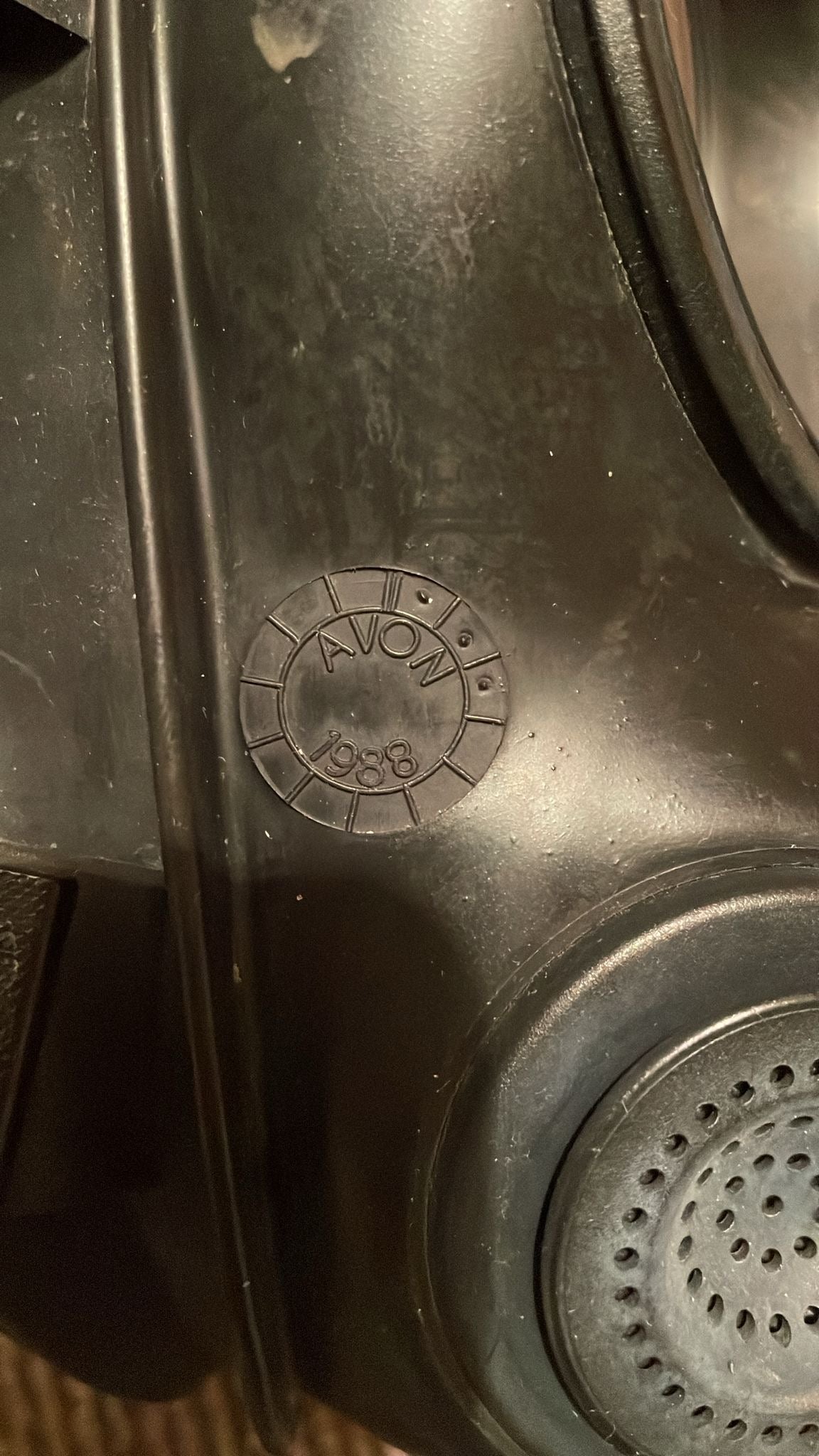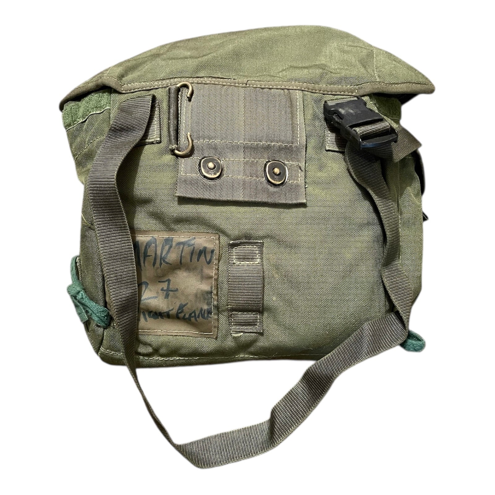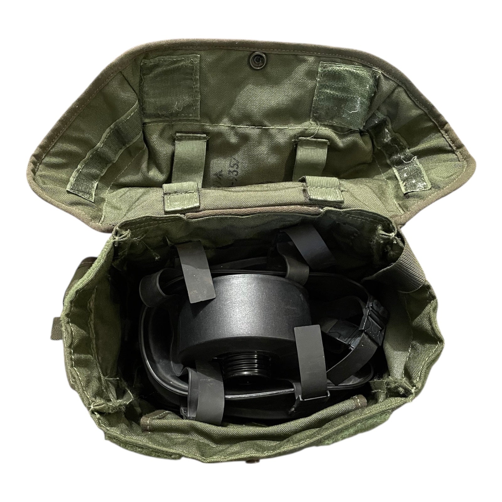 1988 S10 respirator size 3 gas mask with a 1989 olive green haversack and used filter
