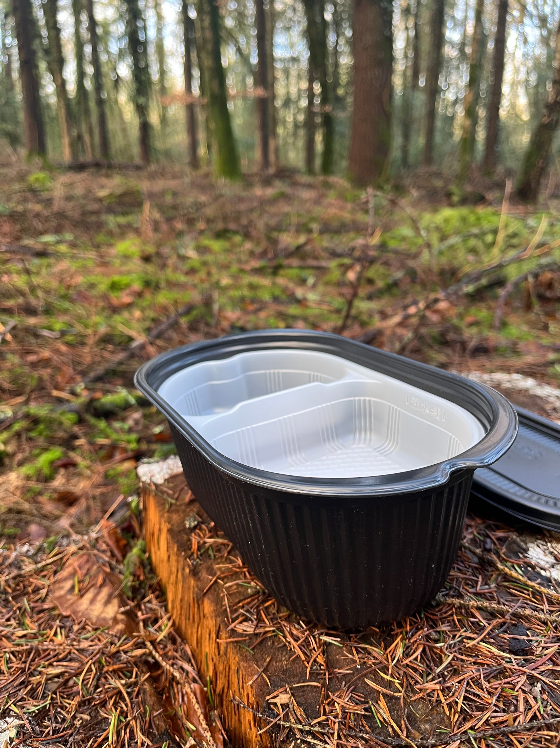 The divided tray accommodates 250g in the main chamber and 150g in the secondary, making it versatile for solo or shared meals.