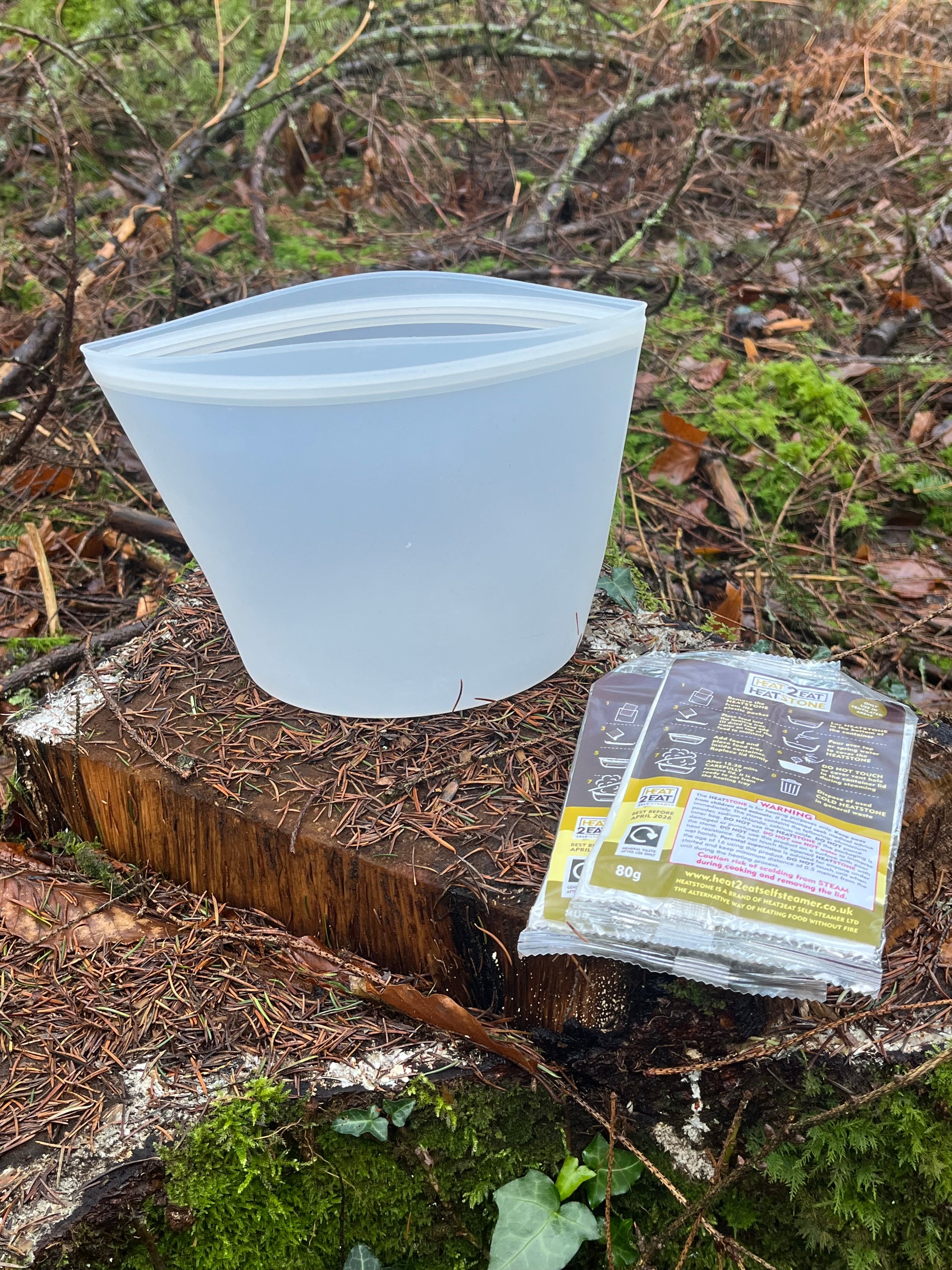 Heat2Eat compact Silicone pouch self steamer food heater for camping food and 2 x heat stones
