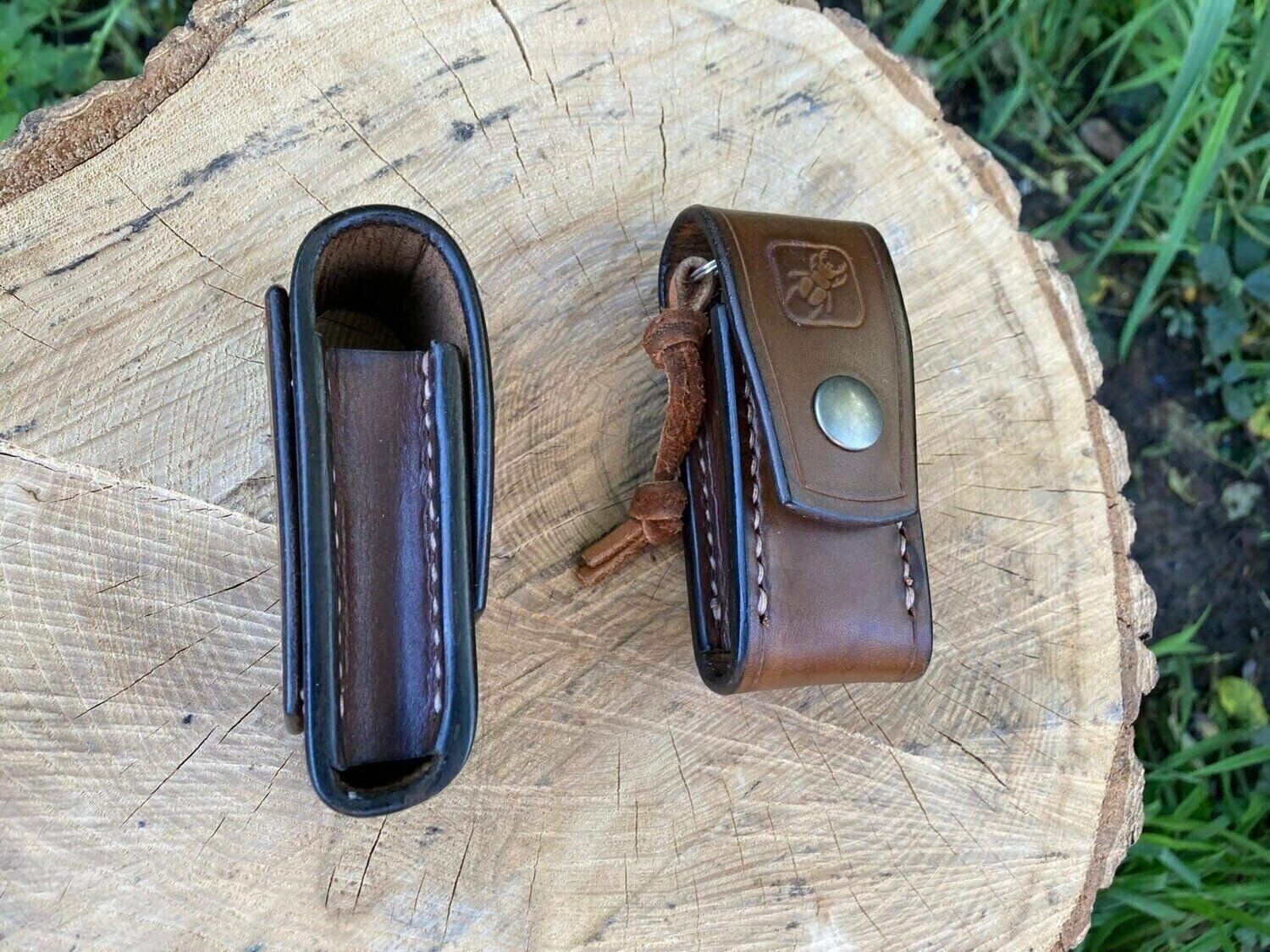 This is our latest design of belt pouch for the Swiss Army Knife. This one covers all 111mm models such as the Soldier, the Forester and other four-layer knives in that range. This pouch has a ferro rod loop - for this pouch without a ferro rod loop please see my other products.